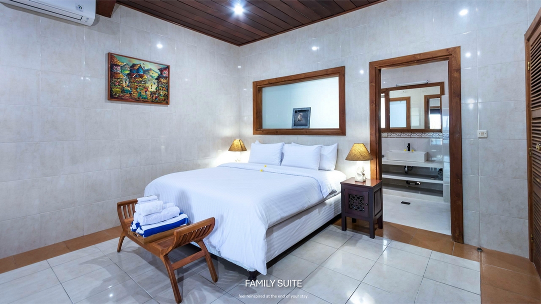 Family Suite is thoughtfully designed to provide extra space and comfort for families seeking a relaxing stay. This well-appointed suite features a spacious layout, a private bathroom, and air conditioning to ensure a pleasant experience for every family member. With carefully selected amenities and a warm, welcoming atmosphere, Family Suite is ideal for families who value privacy, convenience, and quality time together. Whether for a short escape or an extended holiday, this suite offers the perfect balance of comfort and functionality.